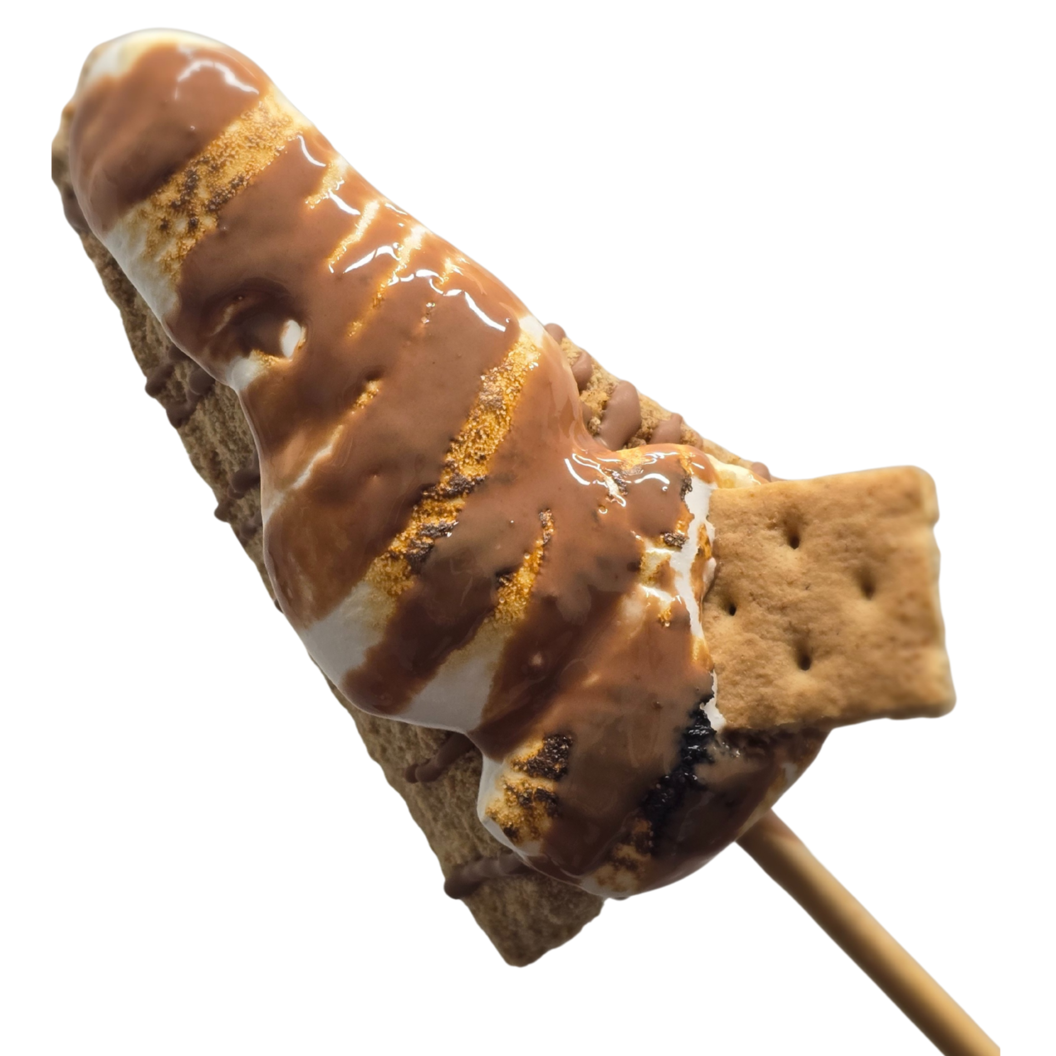 A rich, creamy cheesecake dipped in milk chocolate, rolled in graham crackers, topped with torched marshmallow fluff, and finished with a drizzle of milk chocolate. A campfire classic, elevated.